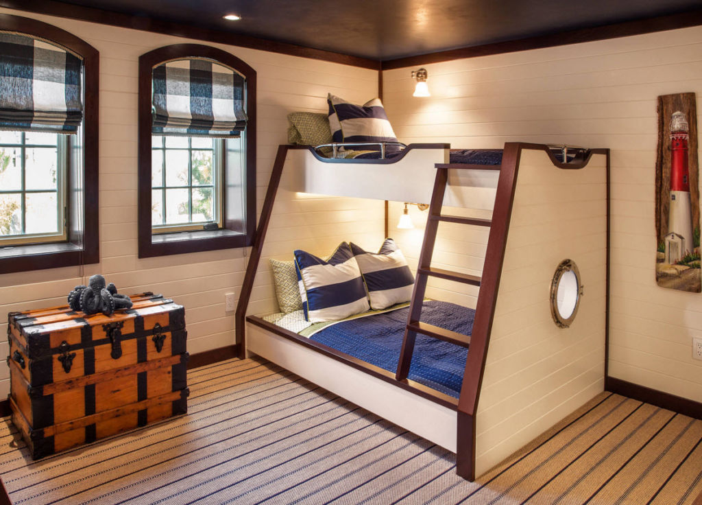 Кто не читал в детстве знаменитый роман Роберта Стивенсона «Остров сокровищ»? Почувствовать себя на месте молодого юнги Джима Хокинса поможет интерьер под морскую каюту: