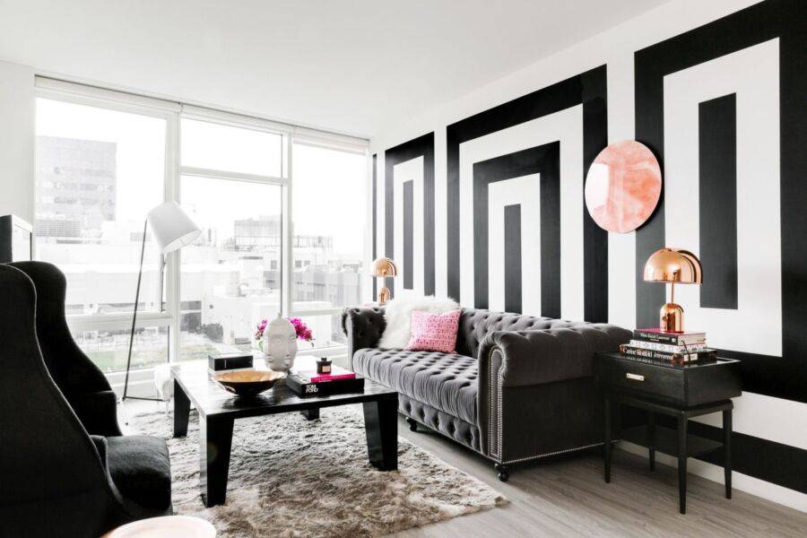 При подборе варианта наклеивания полотен стоит учитывать все факторы – от направленности света до расположения мебели. Например, в гостиной с угловым диваном за этим предметом мебели правильно будет расположить акцентную стену.