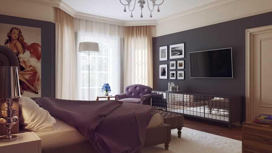 В крупногабаритных помещениях можно дать волю фантазии и экспериментам, устроив игру контрастов и в качестве акцента сделать темный дизайн обоев для спальни, а мебель использовать светлую. Но будьте внимательны, не заигрывайтесь!