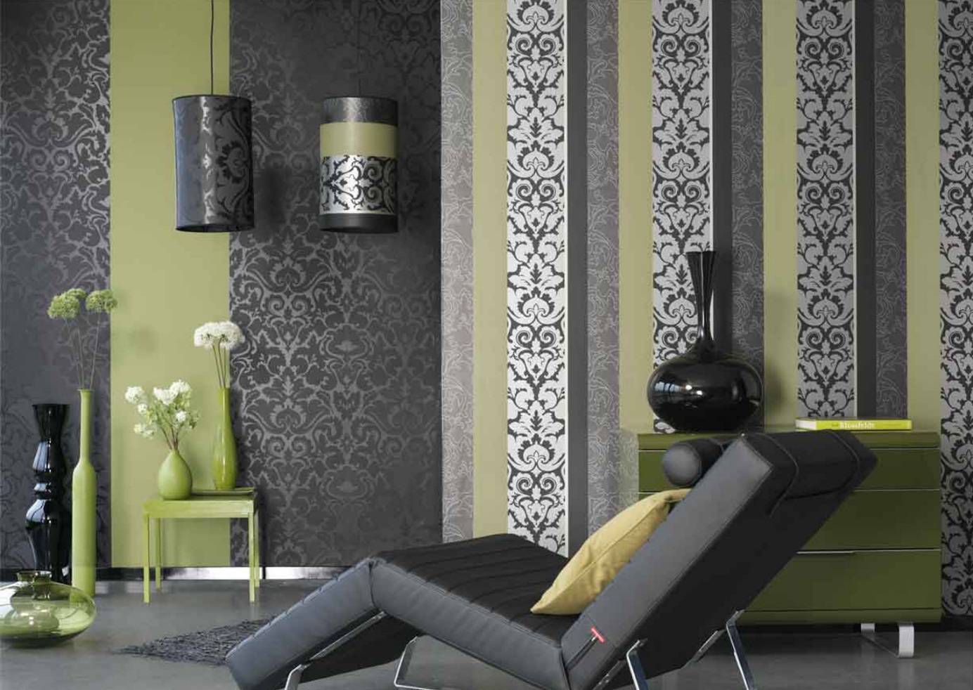 Подбор обоев двух цветов для совмещения осуществляется в соответствии с дизайнерскими направлениями.