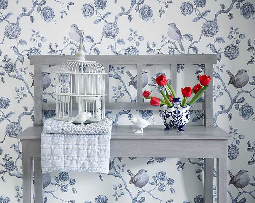 Для стиля прованс прекрасно подходят обои в цветочек. На покрытиях часто изображаются небольшие букетики, виньетки, отдельные цветы, расположенные в хаотическом порядке. Могут быть изображены геометрические фигуры в порядке исключения. В прованский стиль абсолютно не вписываются яркие экзотические птицы. Такие цветы, как крупные маки и бордовые розы, также выбиваются из темы прованса. Кроме того, неуместны абстрактные кричащие рисунки, изображенные городские мотивы или крупные орнаменты.