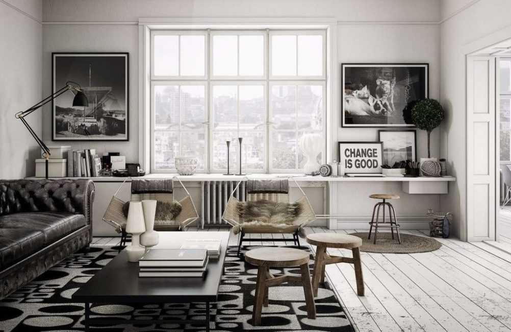 Скандинавский стиль — простор, минимализм, обилие дневного света и яркие красочные акценты по всей квартире, отсутствие захламленности предметами интерьера. Несмотря на кажущуюся простоту, скандинавские интерьеры выглядят очень стильно. Благодаря белым стенам и большим окнам, помещение выглядит просторным и легким. Как должен выглядеть стиль лофт в белом цвете, можно посмотреть в нашей отдельной статье.