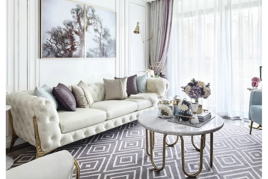 Особое внимание нужно уделить поддержанию симметрии, мебель рекомендуется массивная, приветствуется использование роскошных тканей обивки и гардин, светильников, украшенных коваными элементами, паркетов и ковров