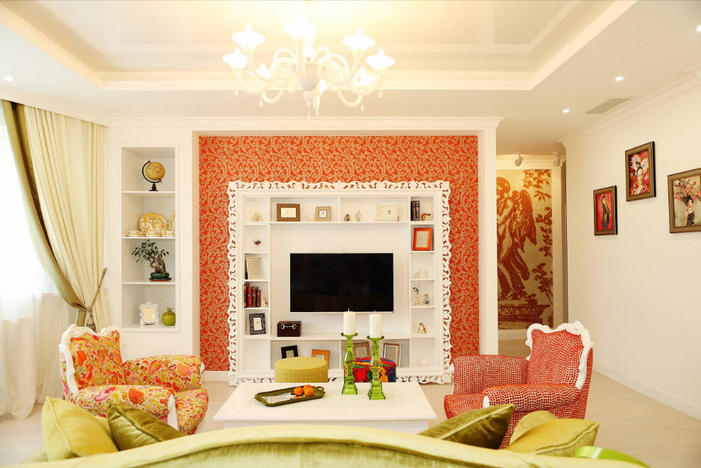 Поэтому планировать и выбирать дизайн гостиной имеет смысл всей семьей – это одно из самых увлекательных занятий. Но это не значит, что одна часть гостиной будет оклеена яркими обоями, которые понравились детям, другая – серыми или бежевыми (по требованию старших членов семьи), а где-то найдется зона, куда папа пожелает вставить фотообои с автомобилями. Все должно быть гармонично, и семья должна прийти к единому мнению.