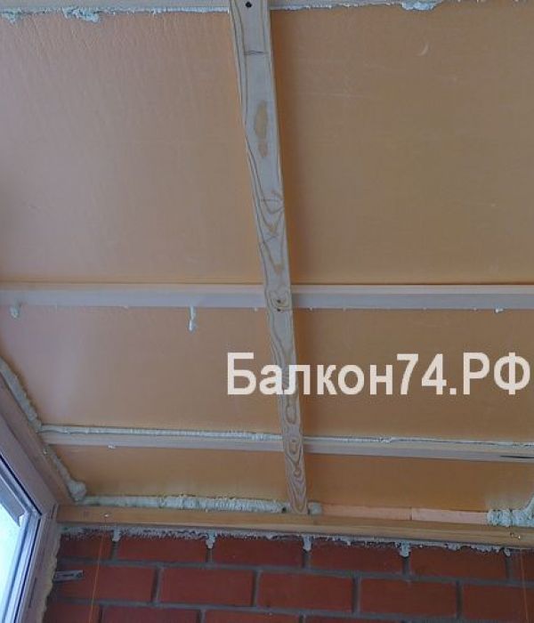 После того, как рейка готова, вкладывается утеплитель, опять же с зазором в 1.5 см от стен и рамы, с последующей запенкой швов, очень важно уделить этому внимание, особенно хорошо запенивать следует зазор между утеплителем и рамой, это усилит герметизацию, и запеночный шов остекления. После утепления, следует установить среднюю рейку, путём вложения и крепежа к поперечным рейкам. В итоге конструкция получается очень жёсткой, с помощью механического крепления к стенам и раме, пена в свою очередь связывает обрешётку