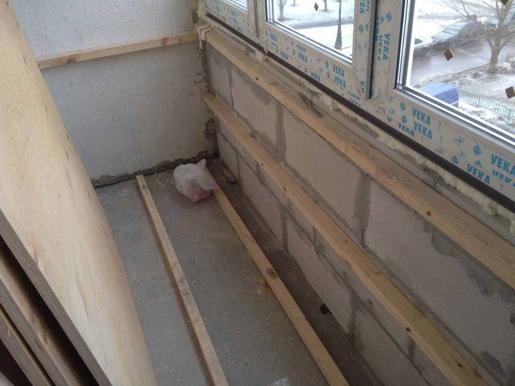 Рассмотрим, как выполняется отделка балкона вагонкой своими руками, пошаговая инструкция по подготовке помещения и укладке обрешетки следующая: