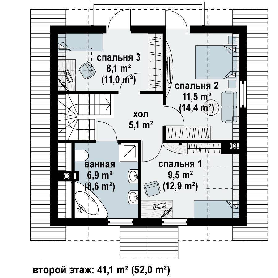 Типовой популярный проект дома 6х8