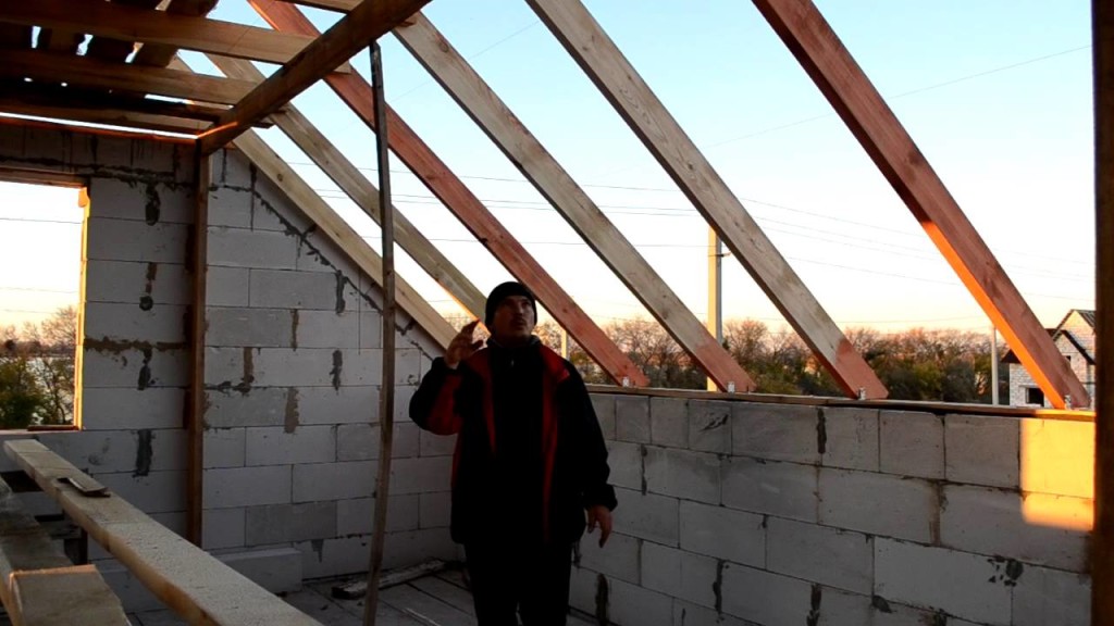 Сначала вам нужно установить прогоны, а уже после этого зафиксировать стропила. Сначала необходимо выложить ступенчатые стенные скосы, а после этого обустроить перегородки мансардного этажа. Обязательно убедитесь в ровности расположения элементов стропильной системы.