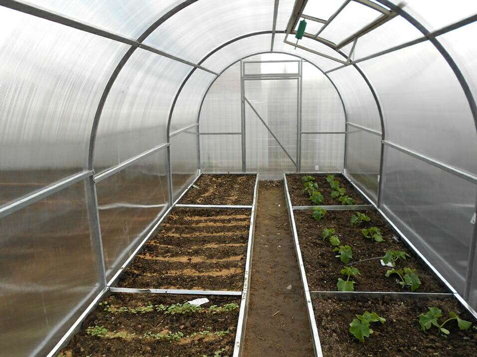Как обустроить теплицу из поликарбоната внутри, фото обустройства трех грядок