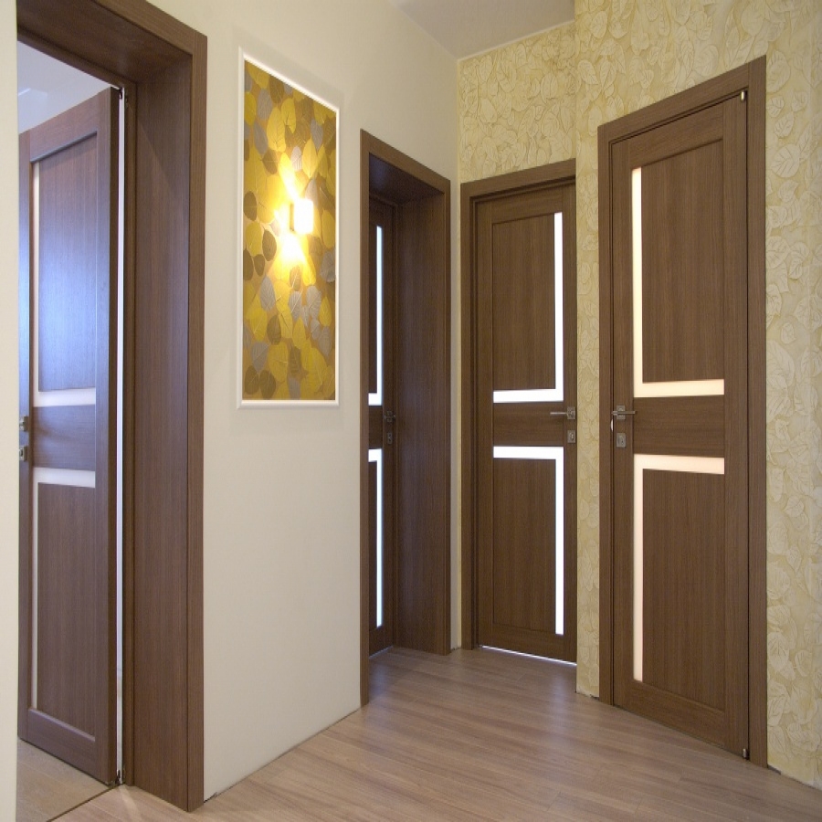 В большом количестве выпускают двери цвета ореха производители продукции из МДФ. В основе конструкции древесно-волокнистая плита средней плотности, отличающаяся хорошими практическими характеристиками. Главное преимущество межкомнатных дверей МДФ – доступная цена, которая может быть в несколько раз ниже, чем у аналогичных межкомнатных шпонированных дверей.