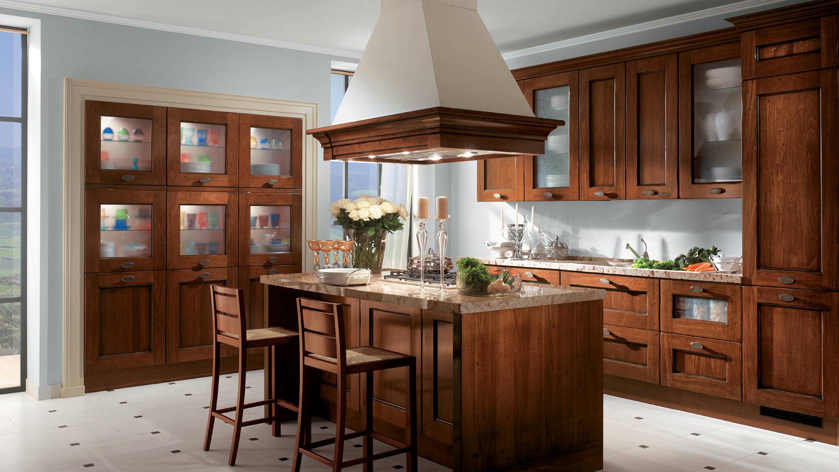 Красивая и уютная кухня из ореха для создания приятной атмосферы