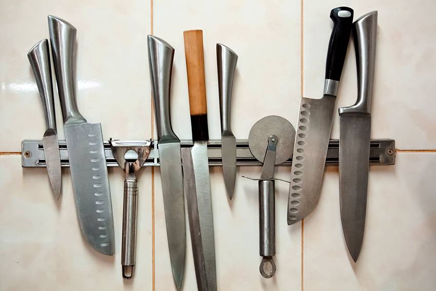 - Неправильное хранение. Специалисты рекомендуют хранить прибор на магнитной поверхности или в подставке. Если положить его вместе с другими столовыми принадлежностями, из-за их постоянного контакта лезвие будет тупиться даже тогда, когда нож не используется. Для обеспечения правильного хранения прибора можно из дерева изготовить своими руками подставку для ножей.