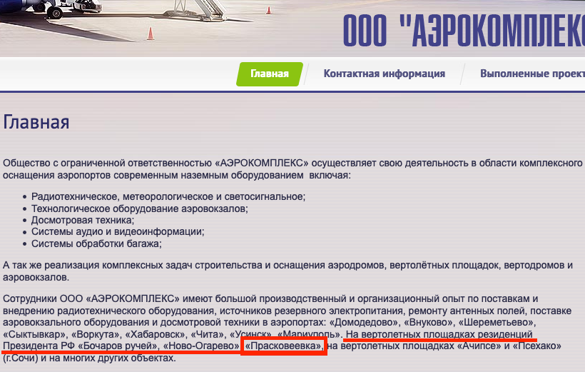 С другой стороны, некоторые СМИ нашли косвенные подтверждения, что комплекс зданий действительно связан с президентом РФ. «Открытые медиа» обнаружили, что московская фирма ООО «Аэрокомплекс», которая занимается оснащением аэропортов, указала на своём сайте, что её сотрудники «имеют большой производственный и организационный опыт по поставкам и внедрению радиотехнического оборудования, источников резервного электропитания, ремонту антенных полей, поставке аэровокзального оборудования и досмотровой техники… на вертолетных площадках резиденций президента РФ „Бочаров ручей“, „Ново-Огарёво“, „Прасковеевка” (село около предполагаемого “Дворца Путина”)».