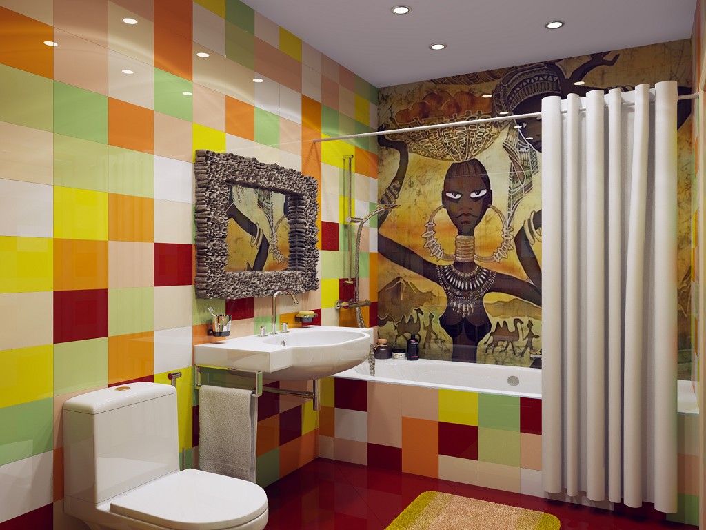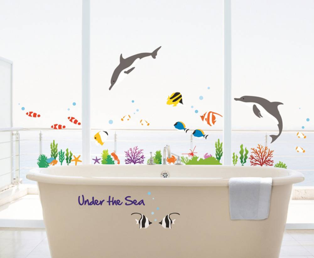 Насыщенные цвета помогут, если ванная комната выполнена в светлых тонах. Такие наклейки добавят помещению колорита.
