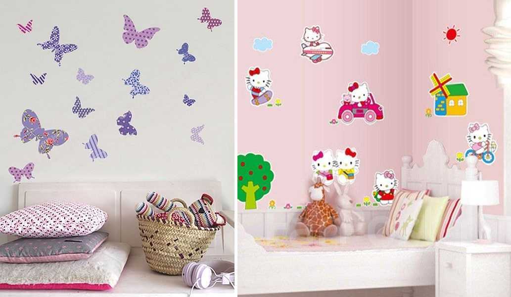 Если в детской комнате на стене есть огрехи, их легко можно скрыть виниловыми наклейками