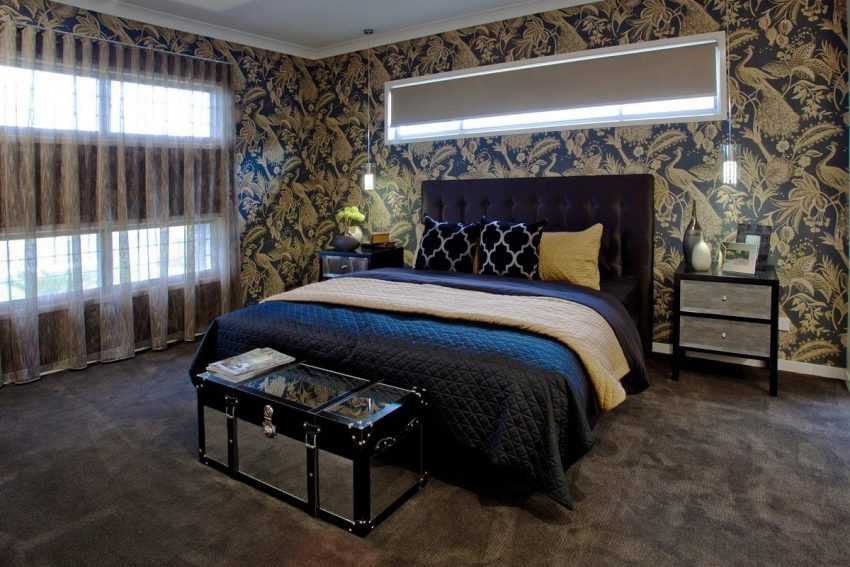 Для интерьера спальни приветствуется сочетание спокойных, однотонных или темных цветов. Возможно использование рисунка или орнамента. Отдавайте предпочтение нескучному варианту, который хочется потрогать, посмотреть, и который в то же время не будет навязчивым.