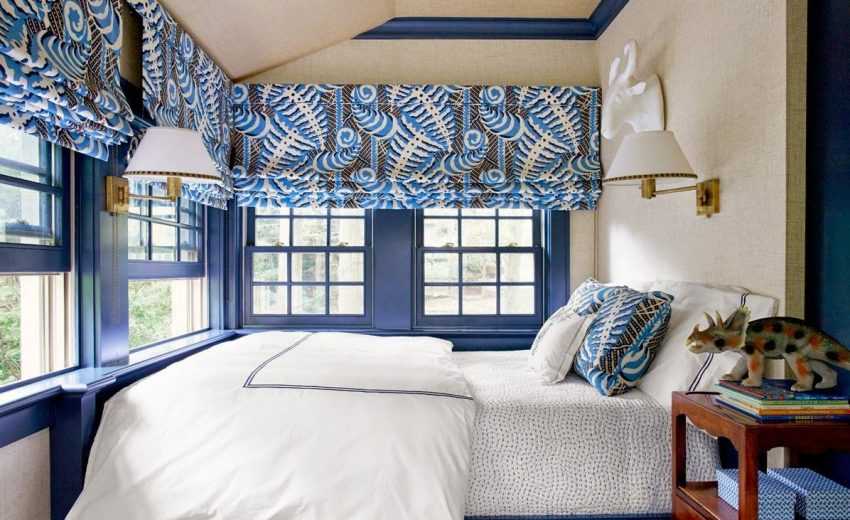- Эркерное окно. Его удобнее декорировать римскими шторами, или использовать комбинированную драпировку.