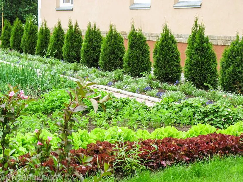 Идея особенно актуальна, если участок небольшой, а отделить хозяйственную зону от сада и огорода хочется. Лучше всего смотрятся кустарники, высотой до 1 метра – они не будут затенять местность и при этом смотрятся очень колоритно. Их можно посадить как симметрично, так и волнообразными линиями.