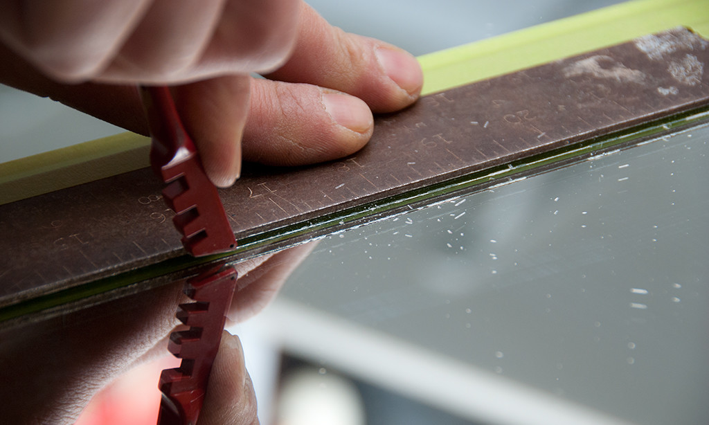 Прежде чем приступить к резке основного листа, сделайте несколько предварительных резов, чтобы определить оптимальную давление на стеклорез.