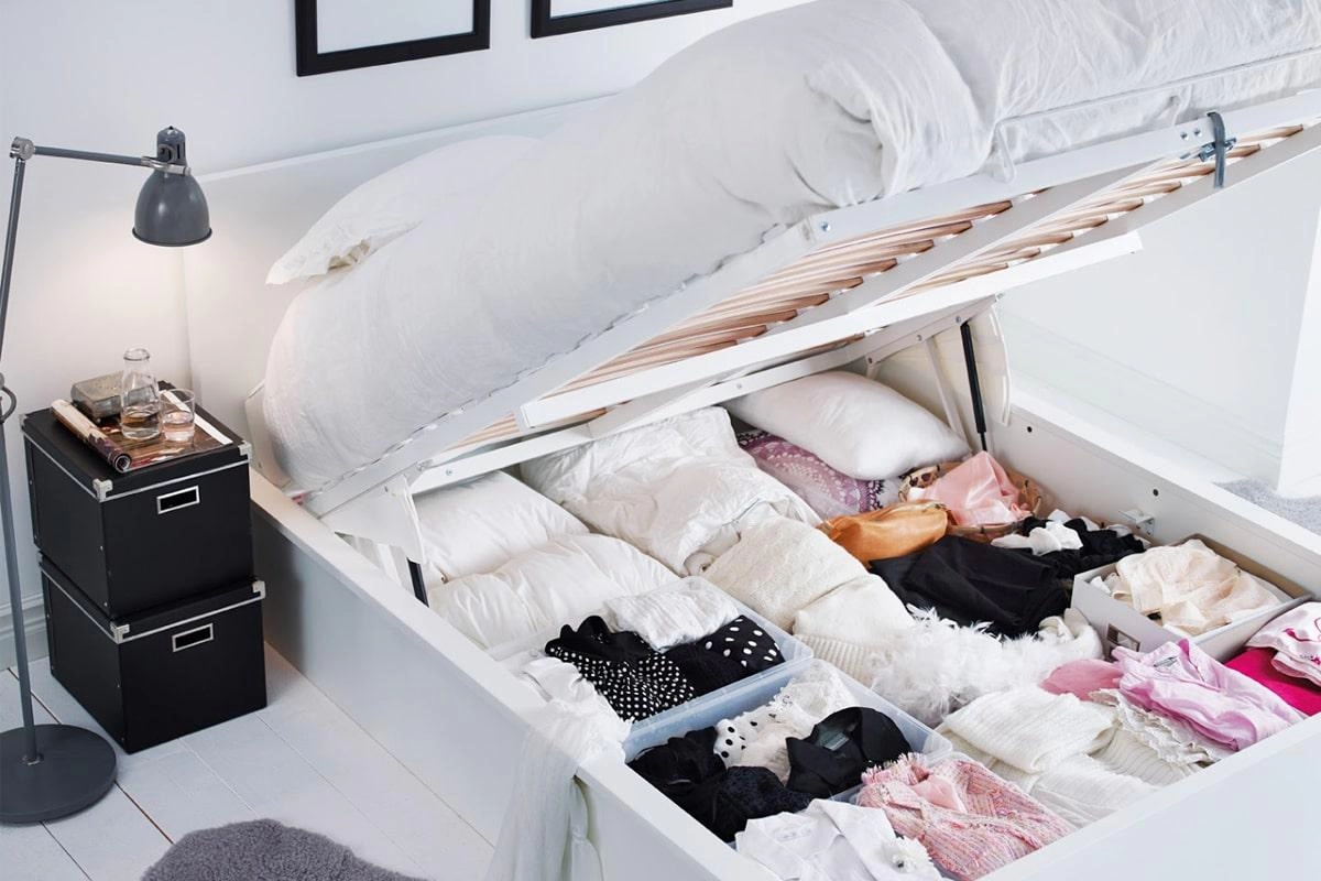 - Используйте упущенные места для хранения предметов, например, под кроватью, за диваном, а также на задней стороне шкафа и дверей шкафа.