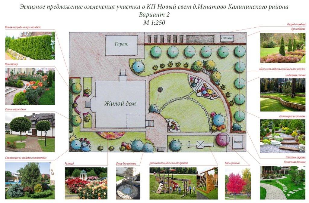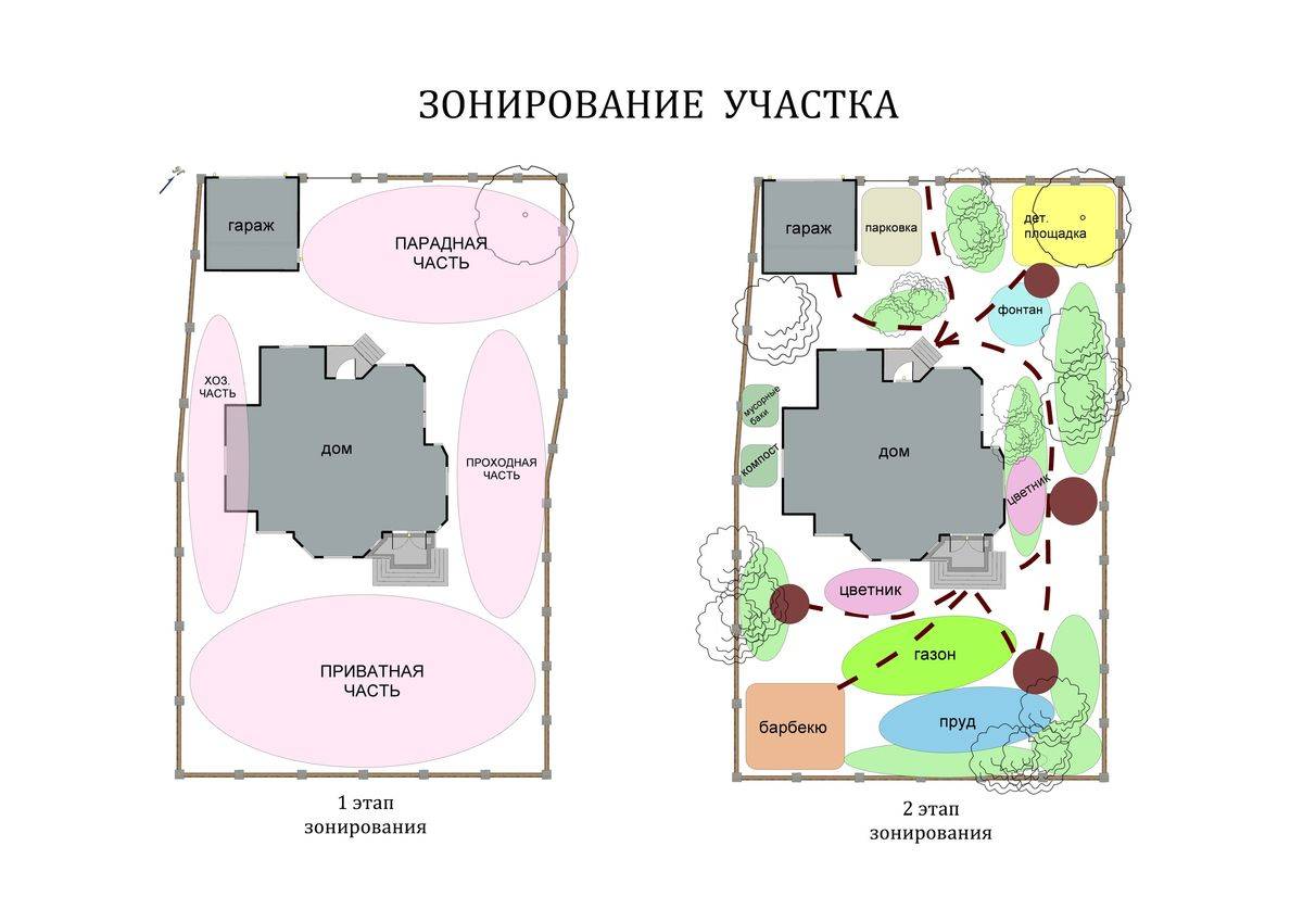Для раздела на зональные площади предварительно производится планировка земельного участка, при её подготовке применяются не только примеры из практики, но и творческие решения.