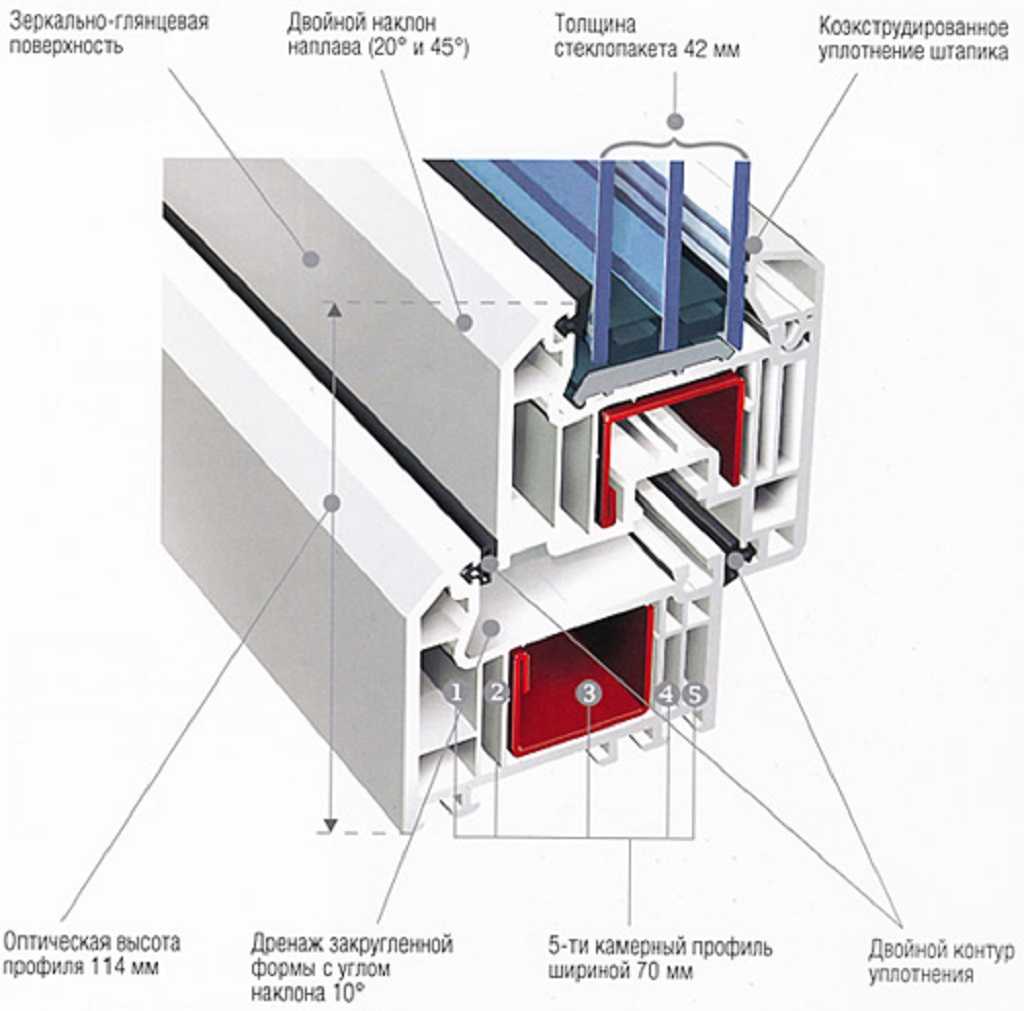 Центральная секция – основа для профиля. Она обеспечивает жесткость конструкции. По бокам – две камеры, отвечающие за теплоизоляцию и защиту от шума.