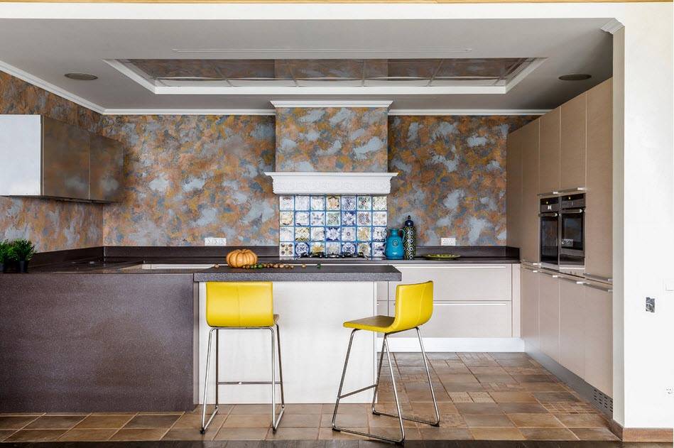 После того, как отделка потолков была завершена, можно переходить к следующему этапу – отделка стен внутри дома. Здесь строительный ассортимент поражает, так как в качестве материалов предлагается множество вариантов. Выбор материалов напрямую зависит от стилевого направления помещения, дизайн-проекта, что был разработан ранее. Среди популярных вариантов следует отметить обои, керамическую плитку, камень (натуральный и искусственный), декоративную штукатурку, гипсокартон или простую покраску.