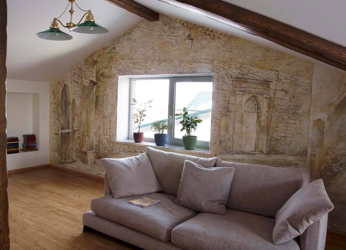 - кирпич и камень также не будут лишними при оформлении комнат. Единственное послабление состоит в том, что можно использовать плитку с имитацией кирпичной кладки.