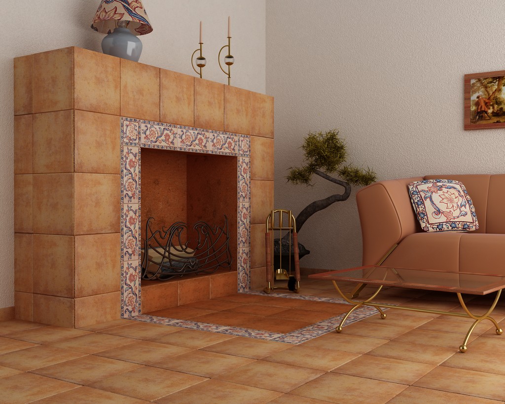Плитка и керамика хорошо переносят даже самые высокие температуры, поэтому используются для отделки поверхности очагов. Материал имеет различные формы, цветовое оформление, рисунок, матовую или глянцевую поверхность. Используется в классическом, хай тек и ретро направлении.