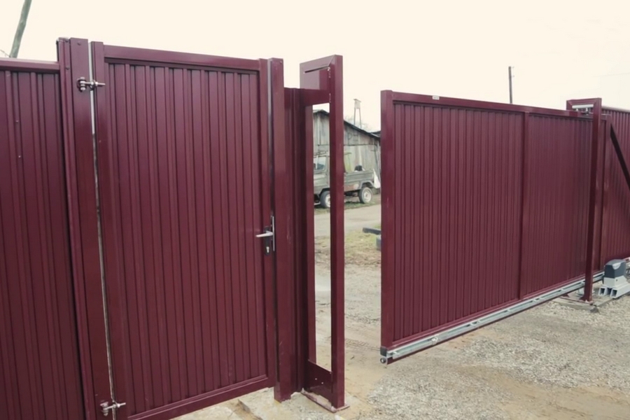 Чтобы обеспечить удобный доступ на территорию, лучше предусмотреть калитку. Конечно, это необязательно, так как створка ворот может сдвигаться на расстояние, достаточное для прохода человека. Однако установка калитки поможет сэкономить эксплуатационный ресурс ворот.