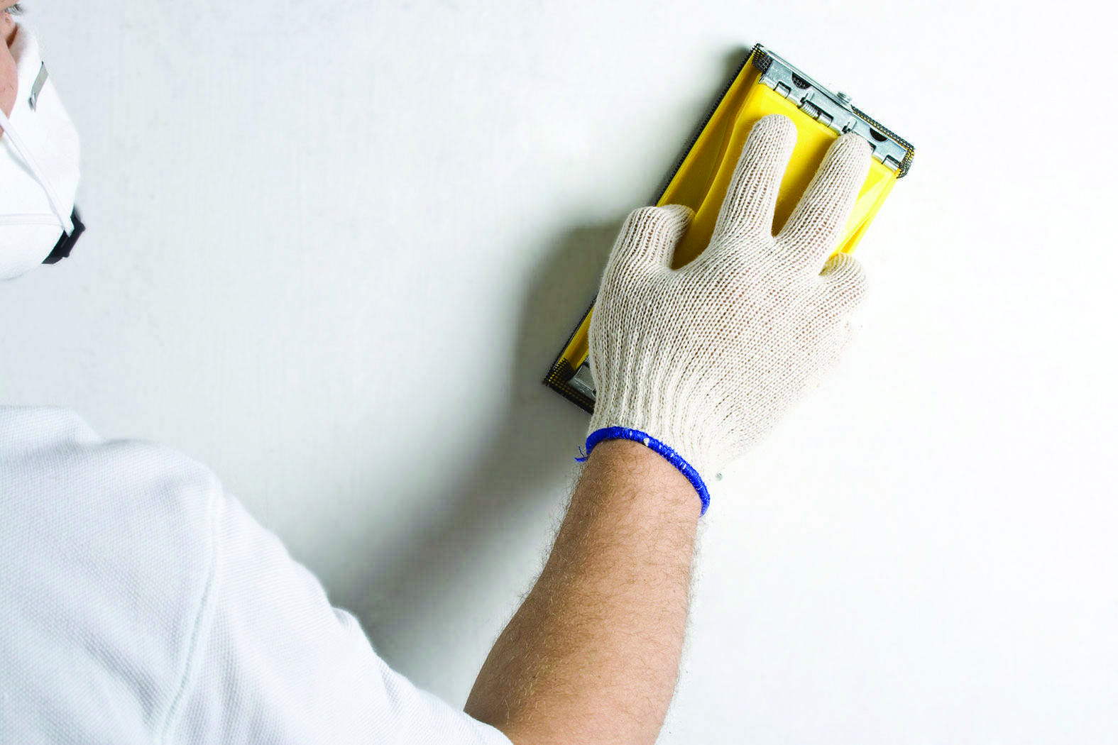 - Прогрунтуйте высохшую штукатурку и выровняйте финишной шпатлевкой.