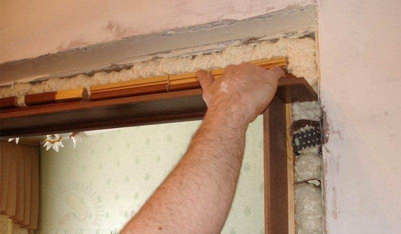 Боковины примеряете, вставляете верхушку. Если край получился на одном уровне с основной стеной, а щели возле дверной коробки минимальны — все сделано правильно. Если есть огрехи, их исправляем.