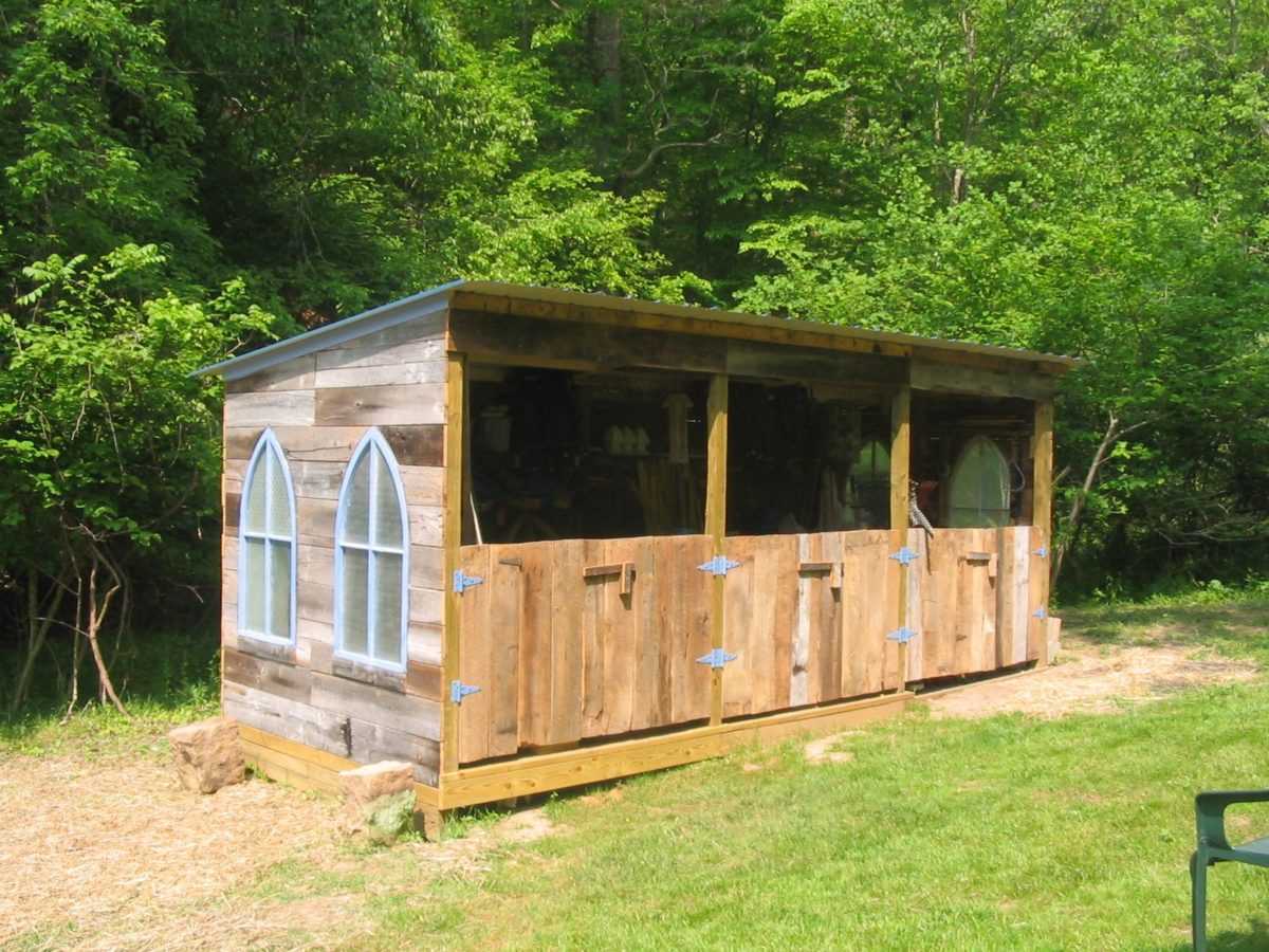 На небольшом крестьянском подворье животных содержат в тёплых сараях. Размещают их с подветренной стороны от жилых помещений. Сараи представляют собой лёгкие конструкции, которые возводятся из подсобных материалов. Строить их можно на лёгком фундаменте или без него. Крышу сарая лучше делать двухскатной. Такой вариант кровли позволяет использовать чердак сарая под хранение сена, которое может выполнять роль утеплителя кровли.