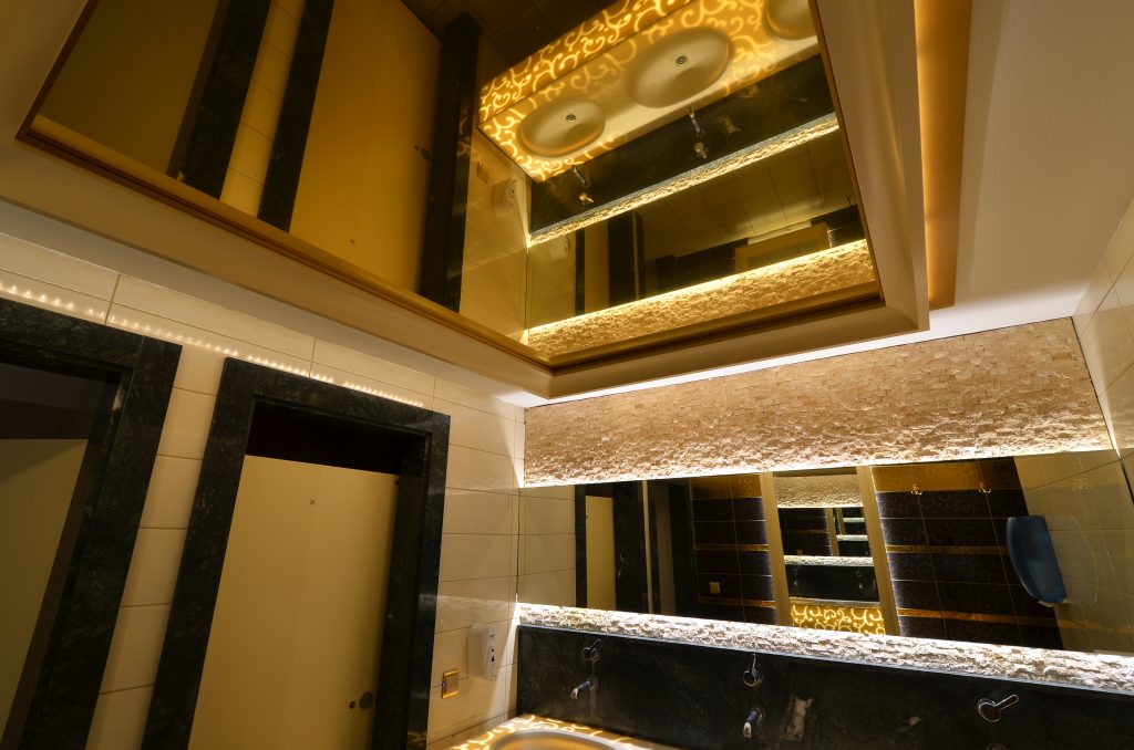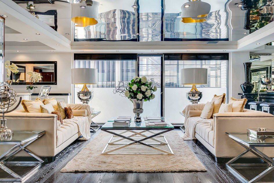 зеркальный потолок придает помещению более изысканный вид