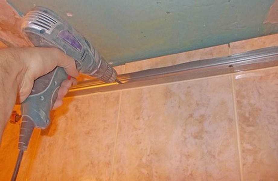 - Монтаж пластиковых полос выполняют, начиная от стены. При этом нельзя забывать о проводке и внутренних коммуникациях.