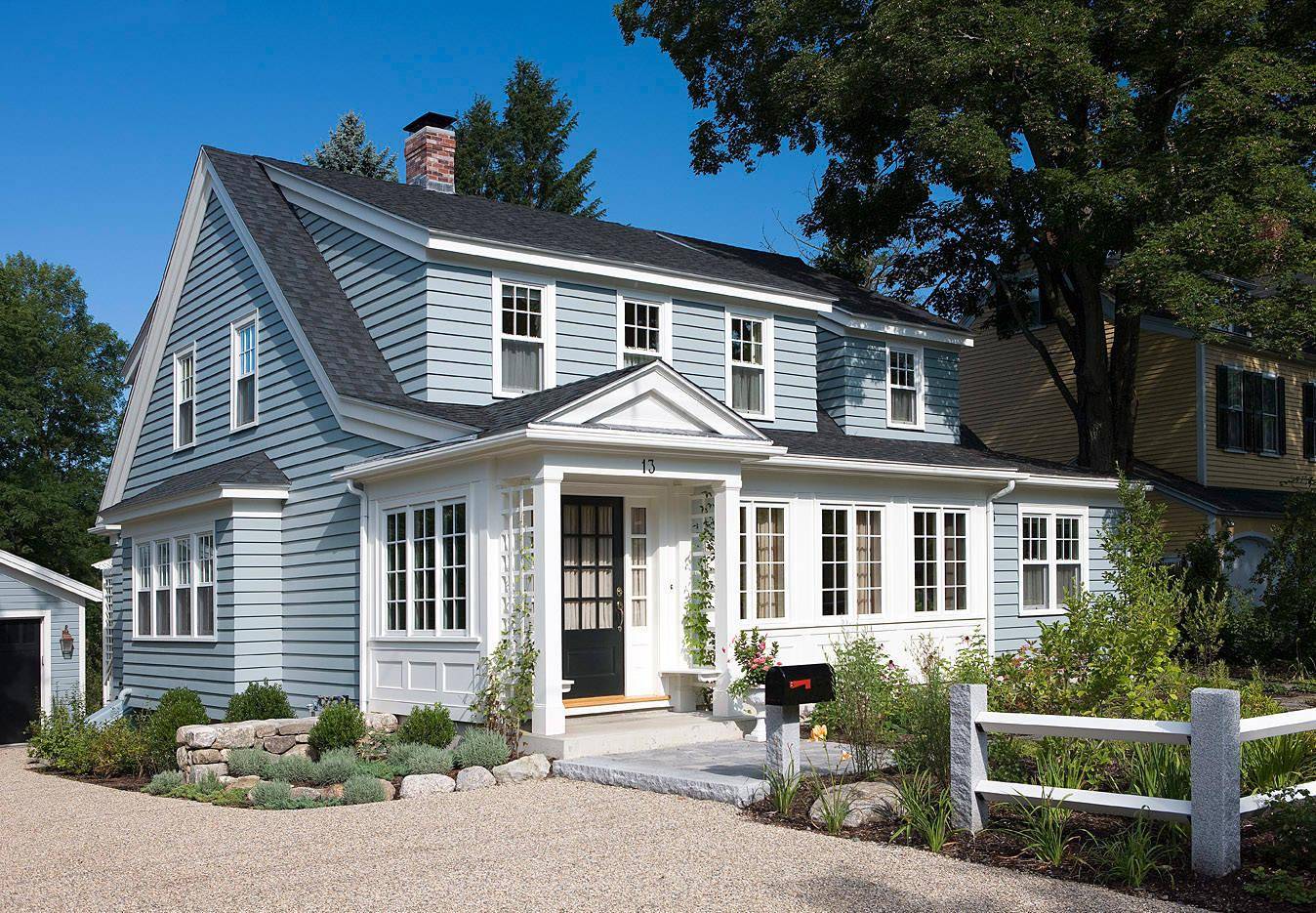 Более сложный способ – это оформление крыльца в отличном от дома стиле. Это допускается, но потребует от вас исключительного вкуса. Чтобы объединить дом и входную группу, необходимо будет продумать общие детали: это могут быть элементы одного и того же цвета или какие-то геометрические фигуры.