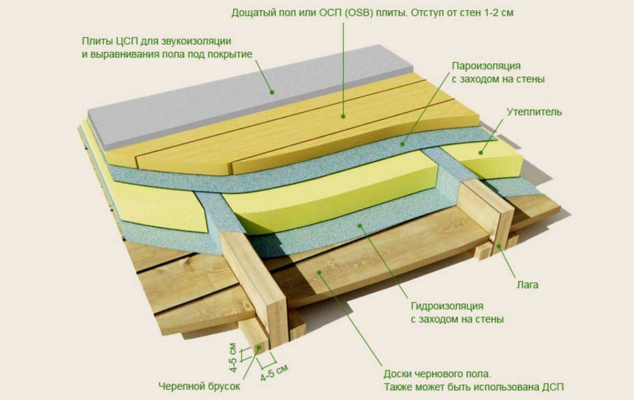 Может иметь различный состав. Поставляется в виде рулона или пласта и может плотно прилегать к балкам. Наибольшее распространение получили: