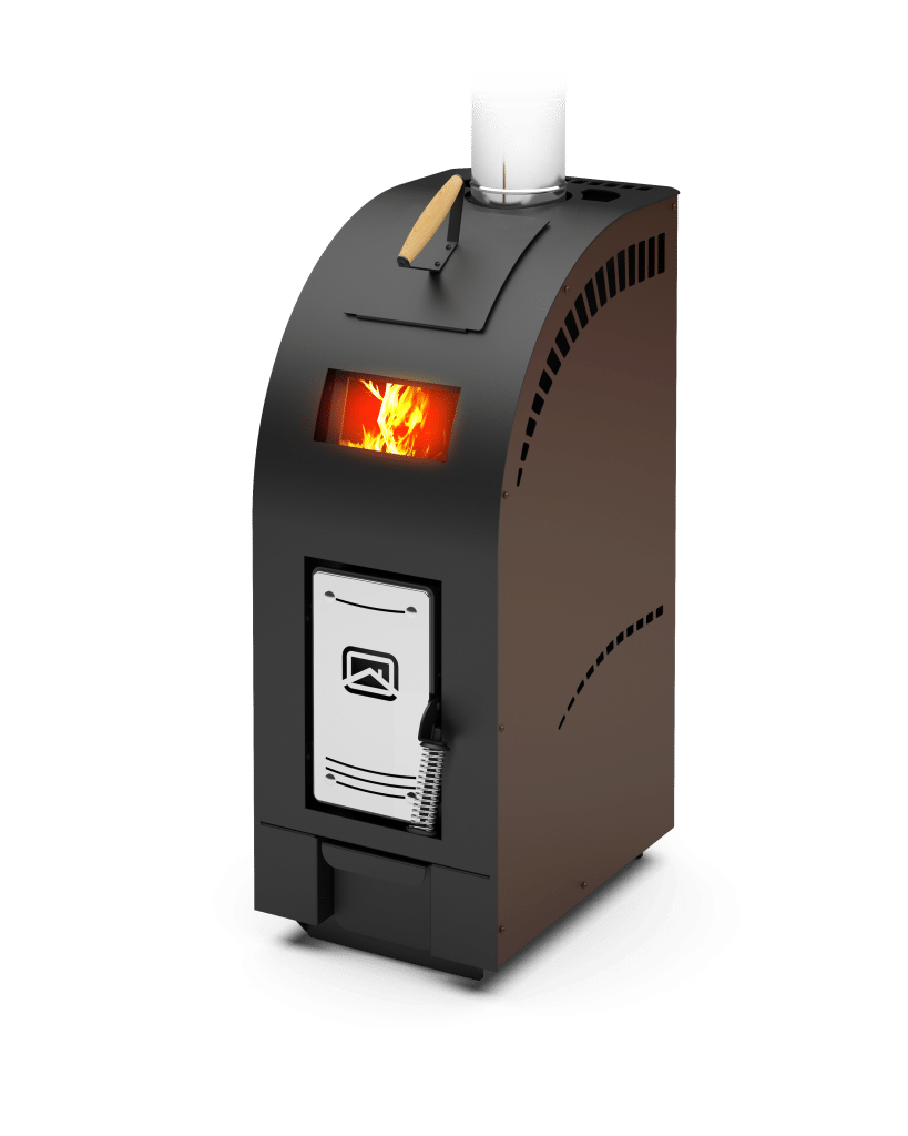 - Камера сгорания с дверцей, выполненная с наклонными стенками для того, чтобы продукты сгорания легче осыпались вниз;