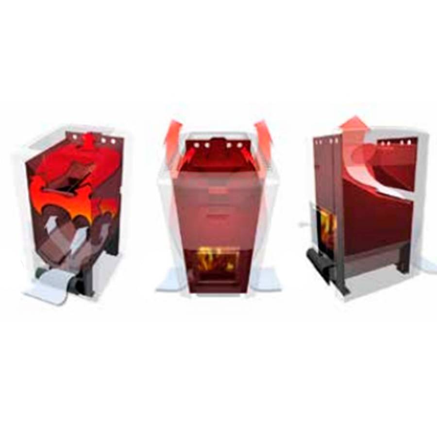 Отличительная особенность дровяных печей. Конструкция содержит два канала, что позволяет значительно сократить время, необходимое для прогрева помещения.