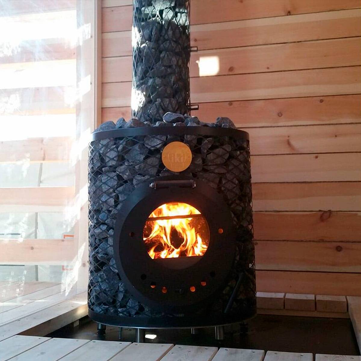 Клиенты предпочитают древесный агрегат со стальной сеткой для закладки камней. Большая вместимость обеспечивает лучший прогрев помещения, а независимость от электричества дает клиенту больше свободы.