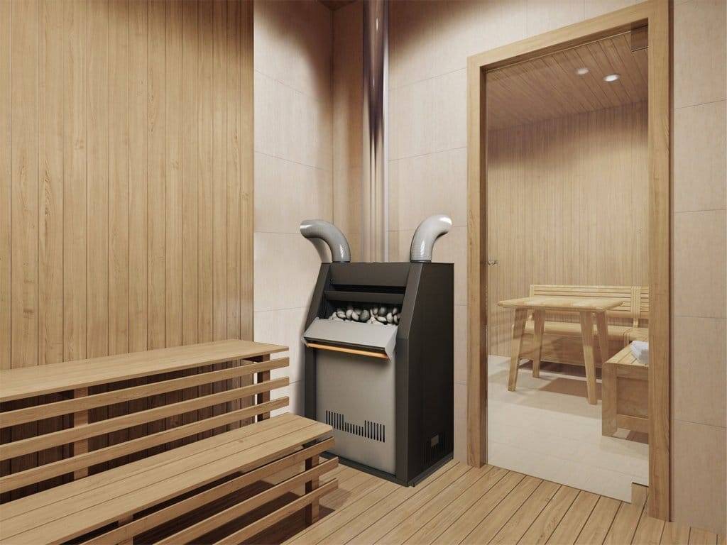 Гарантирует чистоту и комфорт парилки, так как дверца топки находится в соседнем помещении.