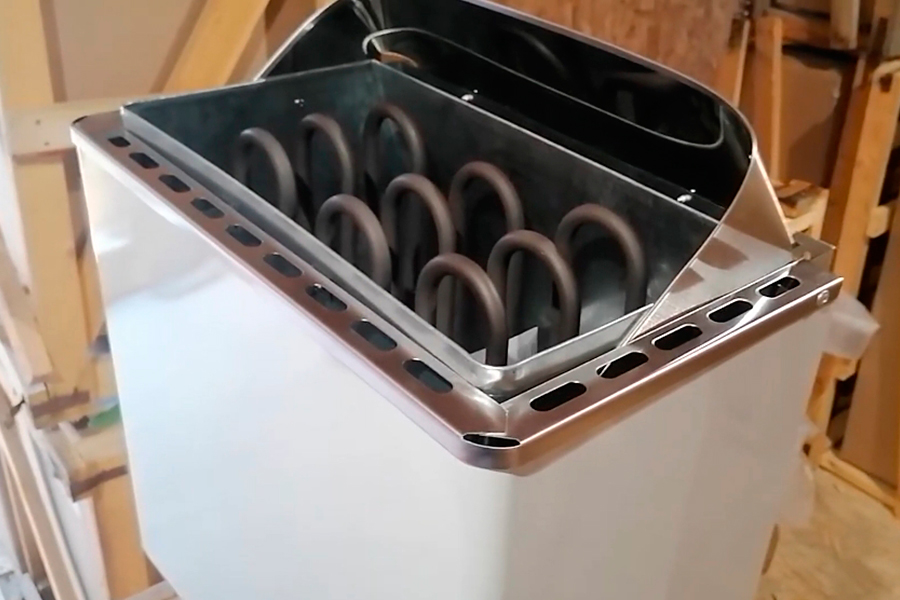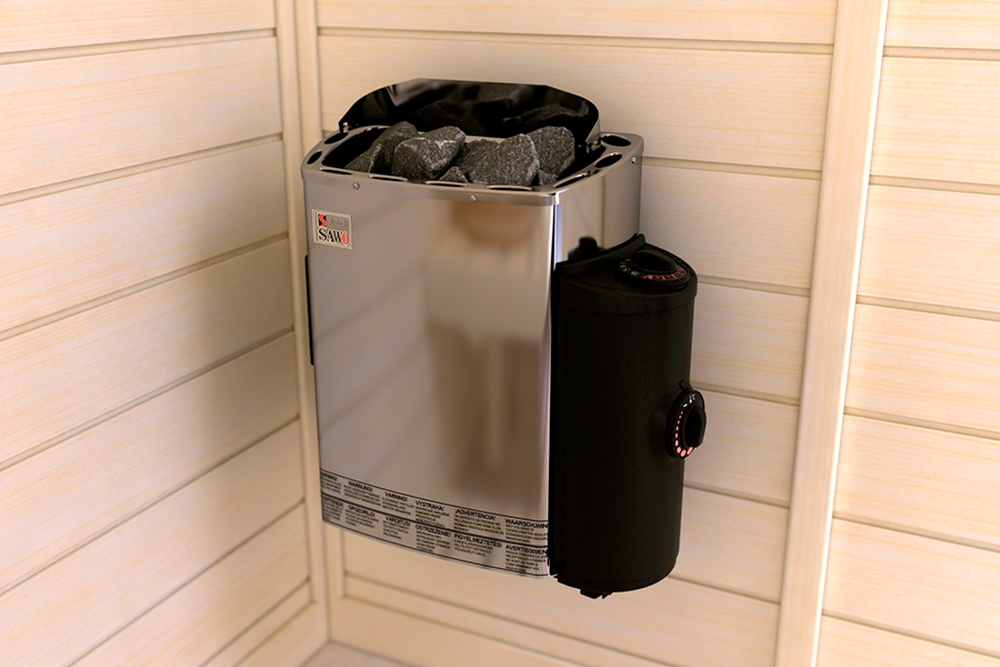 Чистый, без дров, с минимальным уходом и компактными габаритами вид банных печей. Конечно, не «поддашь» пару ковшиком, но разогревать легко: включить в сеть и готово.