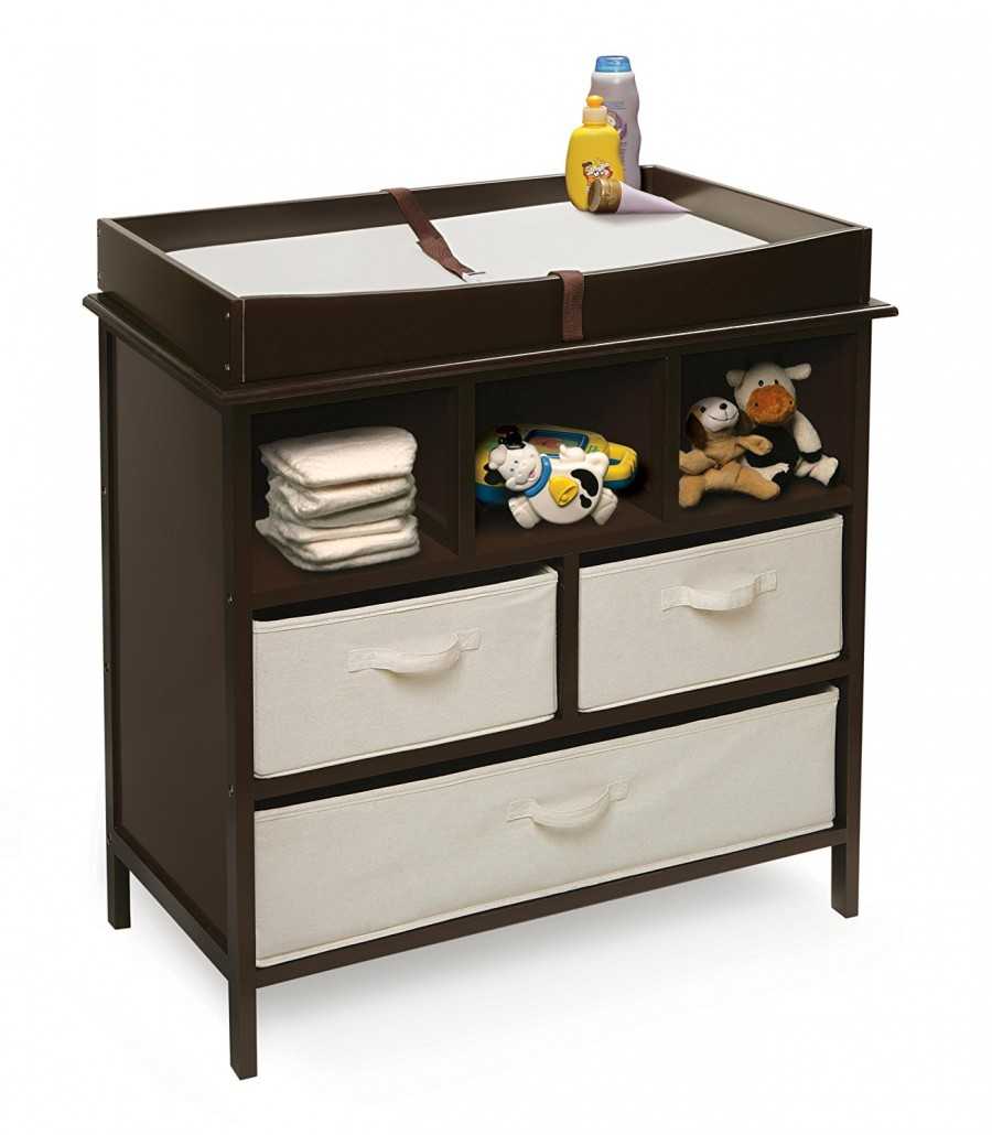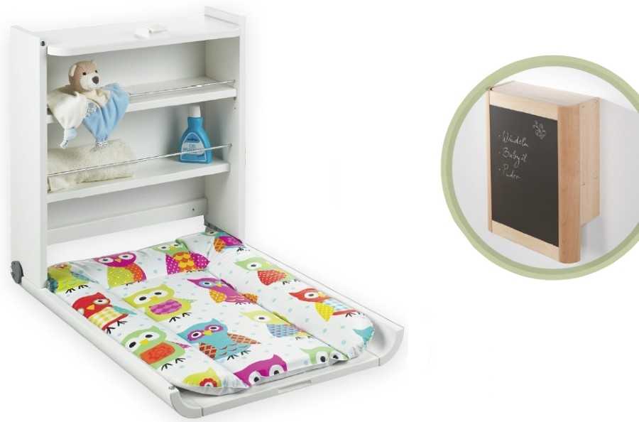Как правило, в комплекте с пеленальный доской идет непромокаемый матрасик с мягкой набивкой, выполненный из гипоаллергенных материалов. Основной недостаток встроенной доски — ограничение функциональности комода. Соответственно, мебель потеряет актуальность, когда ребенок подрастет.