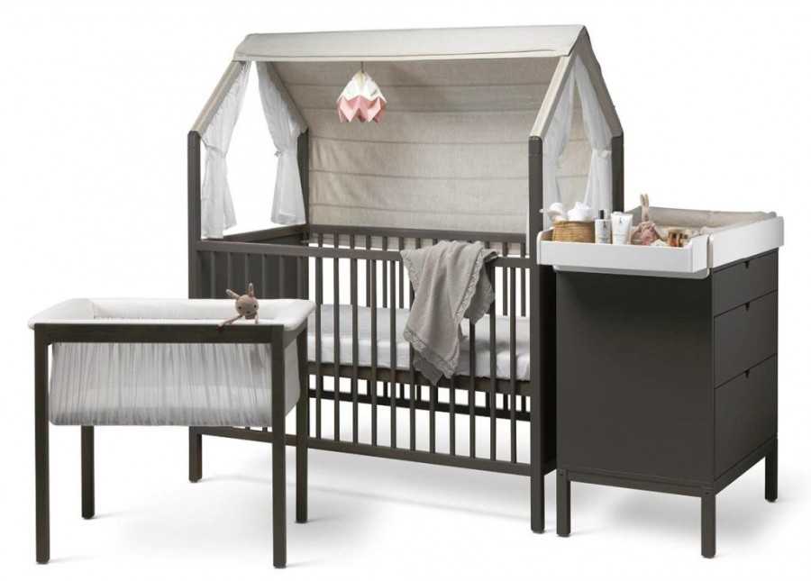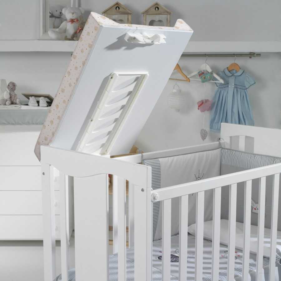 Кроватка-трансформер с комодом — многофункциональная конструкция. В зависимости от роста ребенок может пользоваться ею до 8 лет. Изначально малыш спит в колыбели, а комод присоединен к ней в изголовье или ногах. Когда ребенку исполняется 3–4 года, тумбочку отсоединяют от спального места, размещая эти предметы мебели отдельно. Кроватью можно продолжать пользоваться дальше, единственный нюанс — матрас придется приобретать новый, так как размеры поверхности для сна увеличатся.