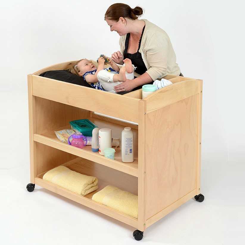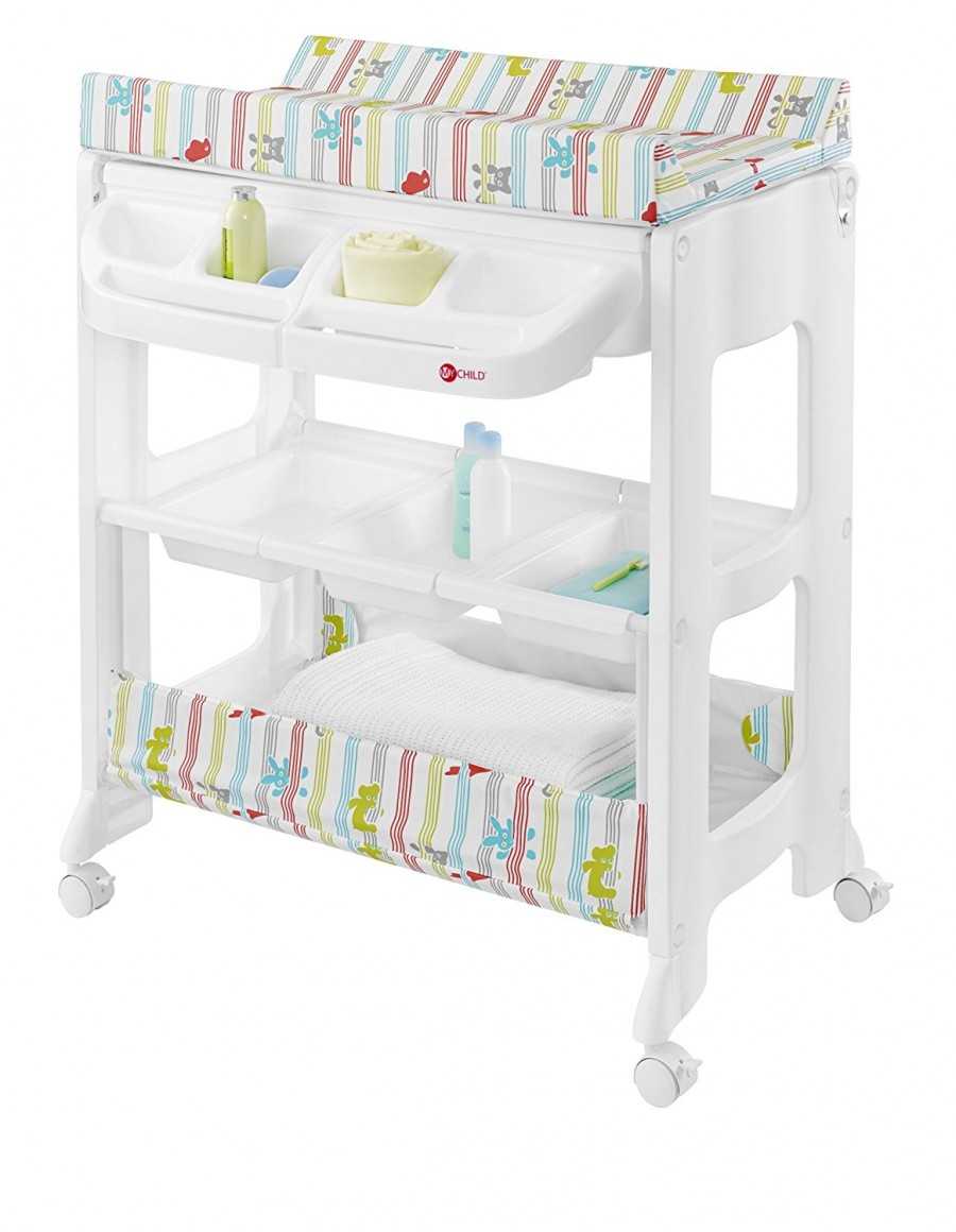 - Он обеспечит безопасность для малыша. Если это пеленальный столик или комод, как правило, место под пеленатором выделяется под детскую косметику, подгузники, влажные салфетки. Их можно извлекать одной рукой, второй же придерживать малютку. Ведь месяцев после четырех, когда он научится переворачиваться, а после ползать, увеличивается риск падения с дивана или обычного стола в ту единственную секунды, на которую родитель отлучился, чтобы взять что-то необходимое для гигиенической процедуры или переодевания