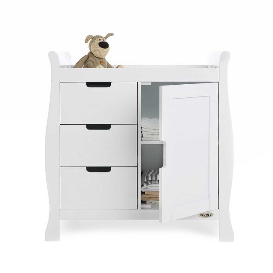 Это классическая модель с выдвижными ящиками и встроенной или съемной мягкой доской для пеленания с бортиками. Из всех вышеперечисленных — самая вместительная конструкция, но и самая объемная, поэтому даже компактные модели комодов мало подходят для небольших помещений.