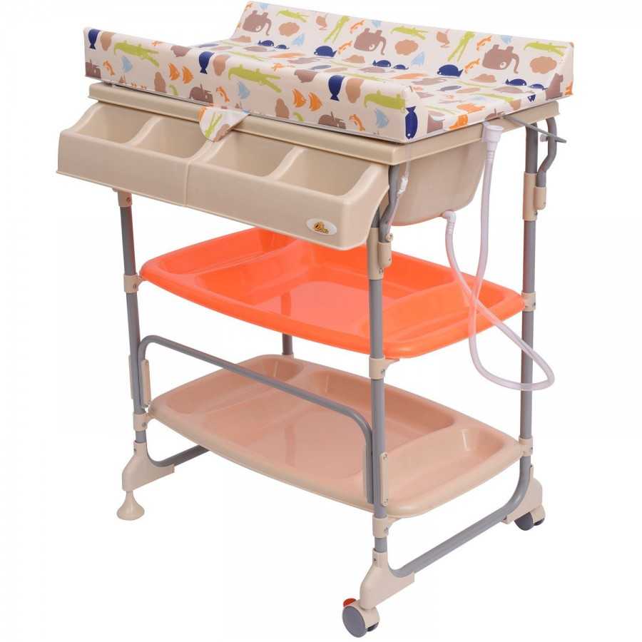 В первом случае придется поднимать откидную крышку, чтобы получить доступ к ванне, а затем снова ее опускать, когда придет время вытирать и пеленать ребенка. Выполнять все эти манипуляции в одиночку затруднительно. Выдвижная ванночка гораздо удобнее. После мытья младенца просто перекладывают на столик, где все готово к одеванию. Такая модель комода удобна для купания, но набирать и сливать воду довольно сложно, особенно если водные процедуры проходят в жилой комнате. Придется пользоваться ведрами или шлангами — в этом существенный минус изделия.