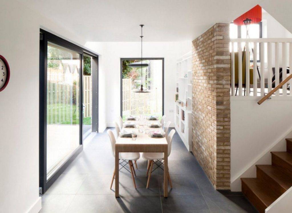 Если на кухне в коридоре места очень мало, столовую зону переносят в другую комнату или заменяют ее на барную стойку или откидную столешницу. К ним подбирают стулья на тонких ножках или прозрачные модели – они не перегружают интерьер.