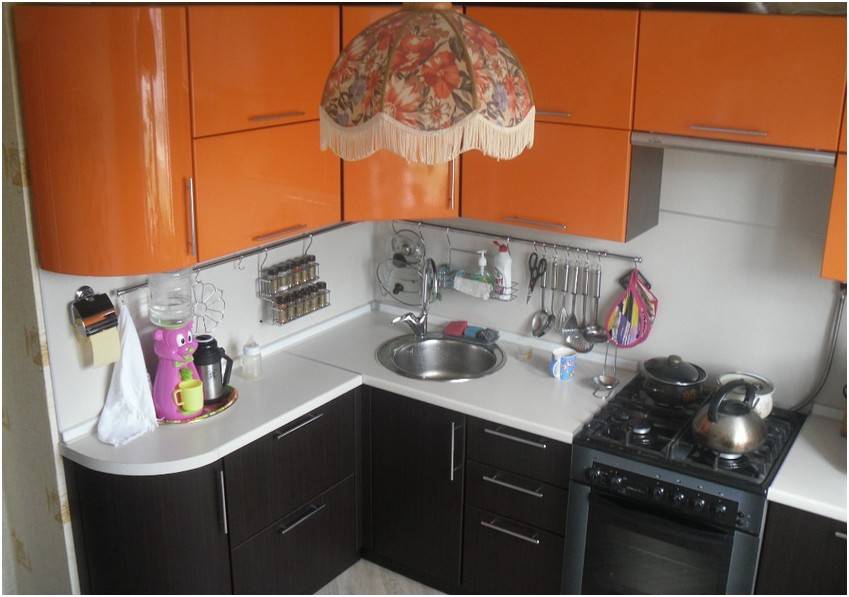 Оформление маленькой кухни по Г-образному проекту, фото обзор: