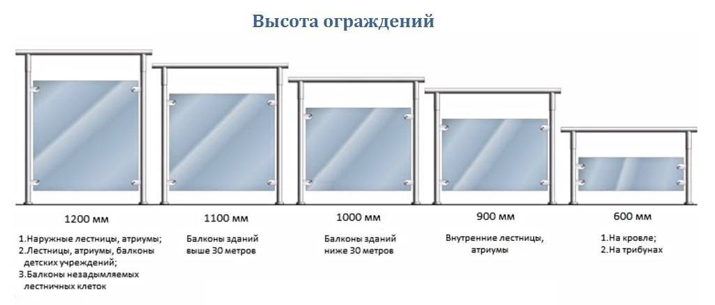 Какие бы эстетические характеристики перил вы не выбрали, конструкции обязаны соответствовать определенным параметрам. Главнейшими требованиями считаются прочность и надежность. Что касается геометрических параметров, то здесь важнейшим является высота — она обязательно должна соотноситься с пропорциями человеческого тела. В частности, верхний край не должен находиться ниже, чем середина живота. Практически оказывается, что высота перил составляет 0,9-1,1 метр. А в таких стандартах как ГОСТ и СНиП, требования к высоте ограждающих конструкций балконов — 1 метр и 1 метр 20 сантиметров соответственно.